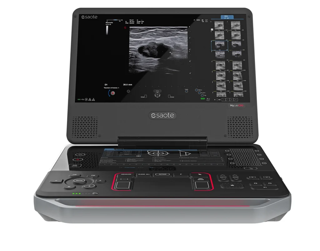MyLab™C30 este un ecograf compact, conceput special pentru a răspunde cerințelor practicii clinice zilnice: acces rapid la ecografie, versatilitate în utilizare și adaptare la spații restrânse, fără a compromite calitatea imaginii sau performanța sistemului.
